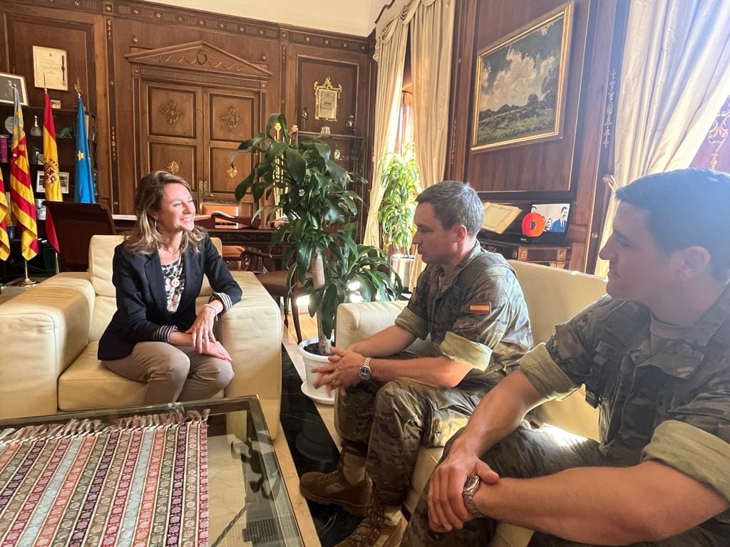 La alcaldesa de Castellón, Begoña Carrasco, ha recibido al Teniente Coronel, Fernando García, y al Capitán, Félix Giménez, del regimiento de Artilleria Antiaérea 71, de Madrid, que han estado realizando maniobras rutinarias en la ciudad de Castellón.