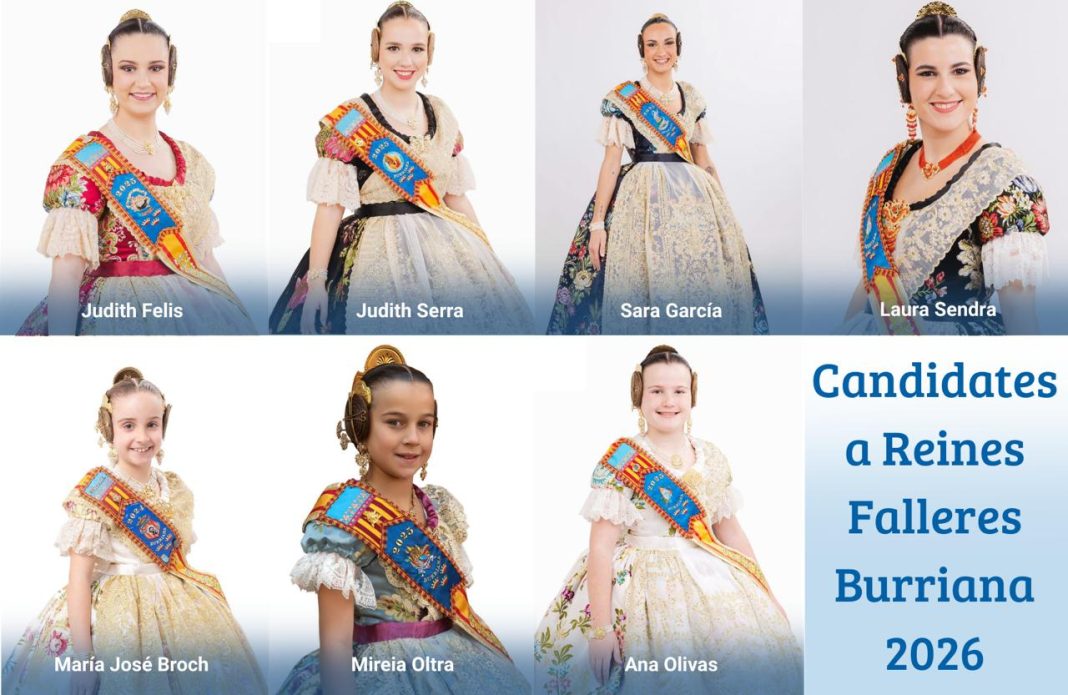 7 destacadas jóvenes de Burriana han presentado sus candidaturas para ser las Reinas Falleras de Burriana 2026. Ellas tienen el objetivo de ser las máximas representantes de la ciudad. También de la tradición y la belleza de las fiestas josefinas.