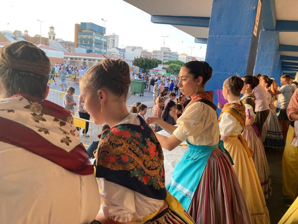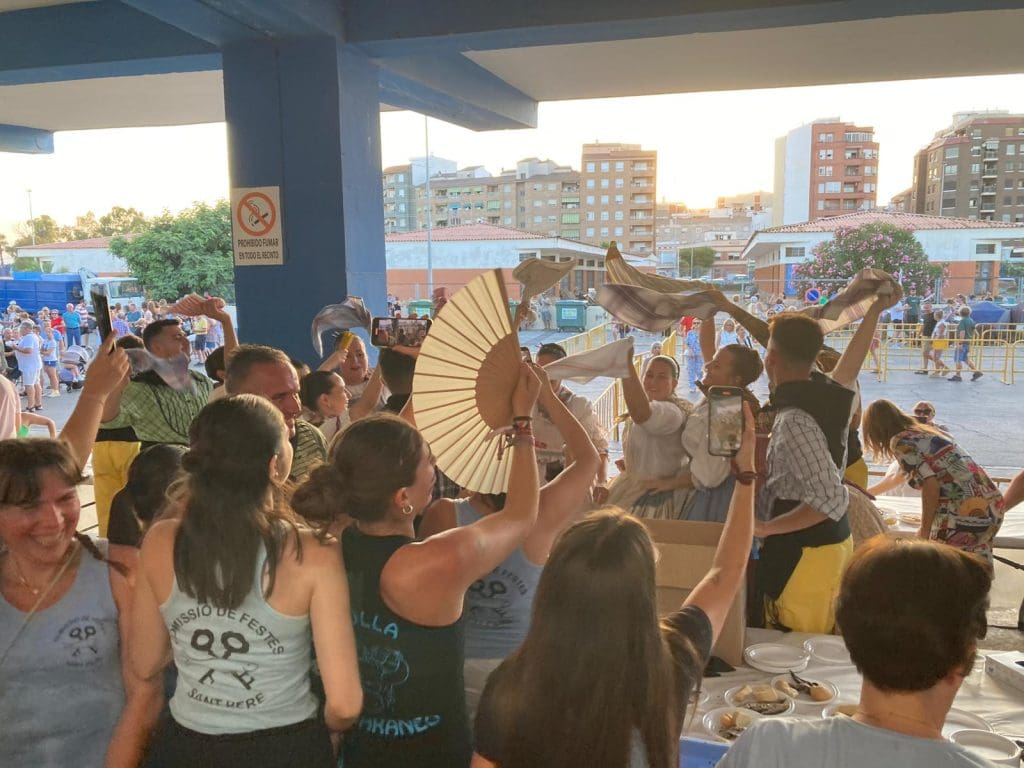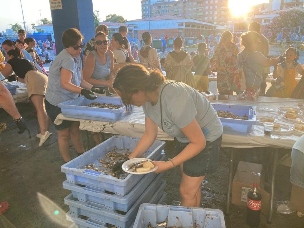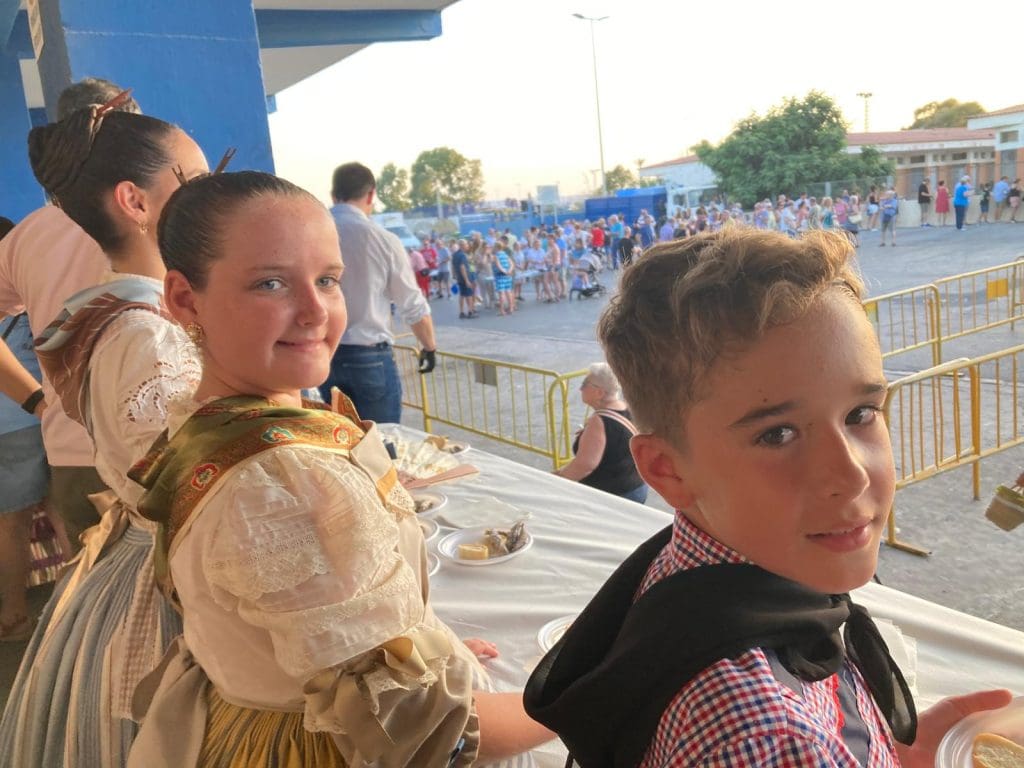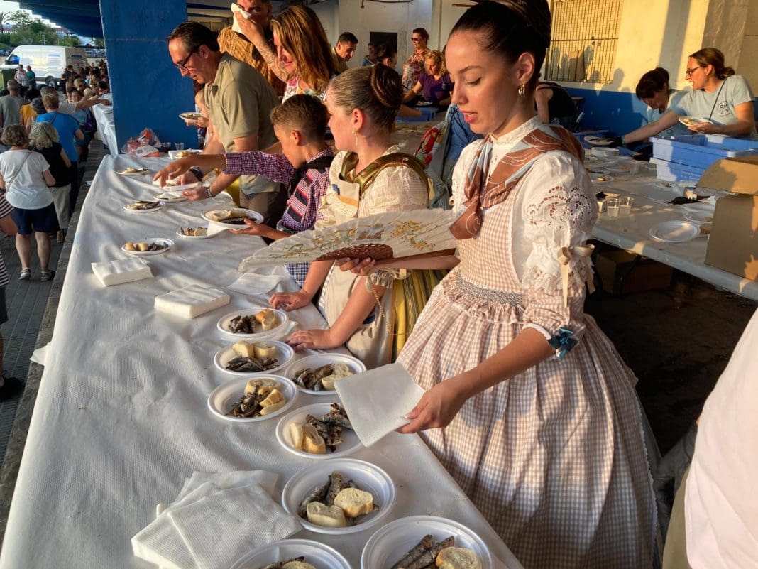 Las reinas de las Fiestas de Sant Pere 2025, María Guzmán y Martina Valerino, estuvieron al frente del reparto junto a los presidentes de la Comissió de Festes, Miguel Valerino y Pablo Valerino. Se implicaron activamente en la atención a los vecinos durante la Torrà de la sardina. Su presencia, cargada de simbolismo, reafirmó la conexión entre la fiesta, la tradición y las nuevas generaciones del Grao.