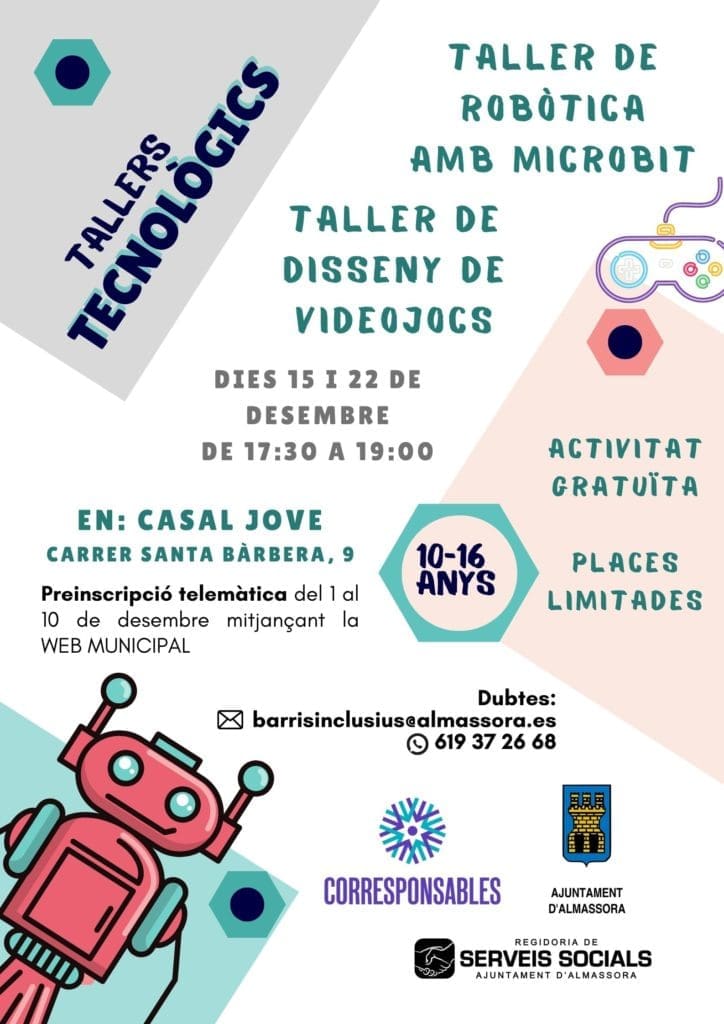 También pensando en un público juvenil, se han lanzado dos talleres tecnológicos, que se realizarán en el Casal Jove los viernes 15 y 22 de diciembre, de 17.30 a 19.00 horas. Uno de ellos abordará el diseño de videojuegos y el otro la robótica con microbit. Pueden inscribirse chavales de 10 a 16 años de manera totalmente gratuita.