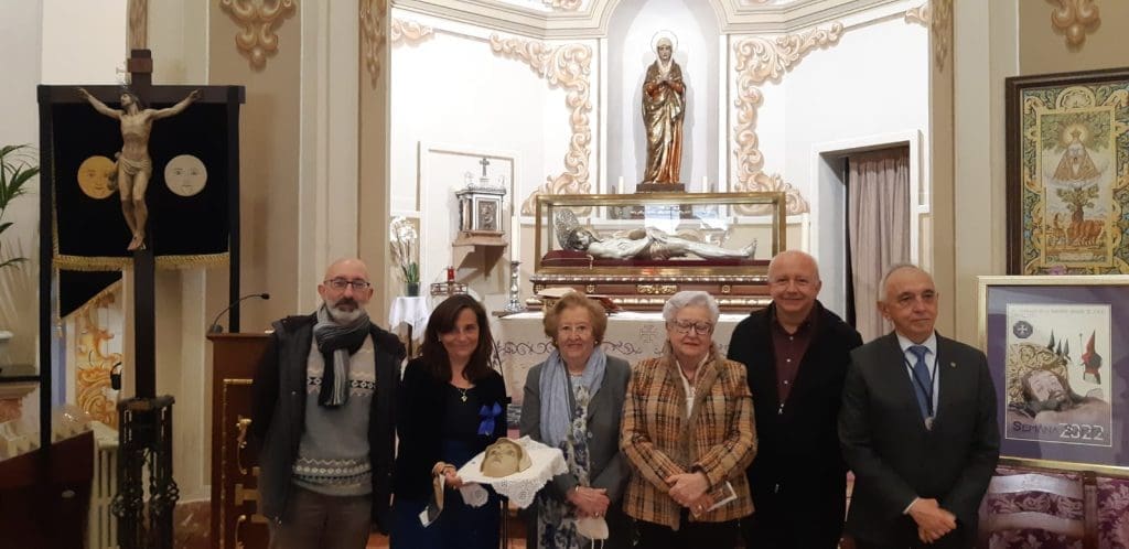 La familia Adsuara ha hecho esta mañana donación de la máscara de prueba de la imagen de la Virgen Dolorosa de la Cofradía de la Sangre a esta misma entidad.