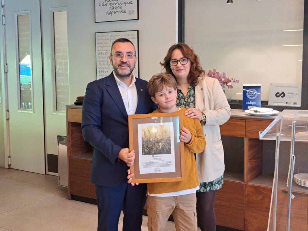 Benlloch, en nombre del Ayuntamiento de Vila-real, ha entregado una alegoría de la ciudad a Marina Martín y a su hijo Jesús en agradecimiento por su “valentía y labor incansable para mejorar la vida de las personas con distonía y no cejar en la búsqueda de un tratamiento definitivo”.