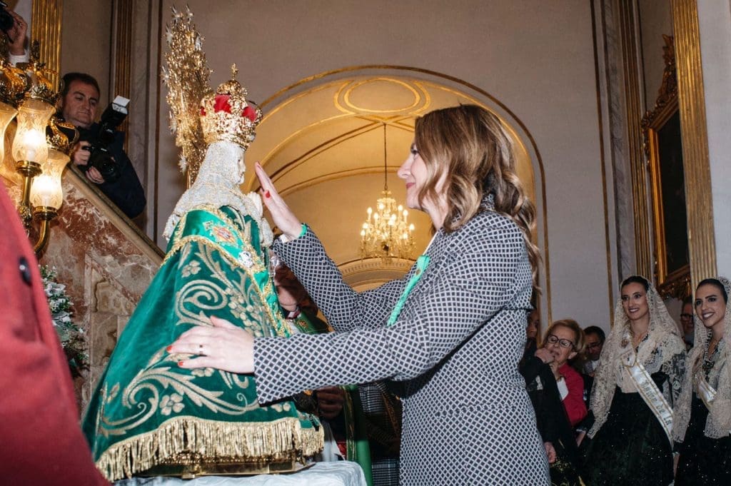 La alcaldesa, Begoña Carrasco, ha entregado la insignia del Fadrí d’Or Honorífic a la patrona de la ciudad en el camarín de la Basílica. La distinción se le ha otorgado a la Virgen de Lidón en el año del centenario de su coronación, cuya celebración será en el mes de mayo.
