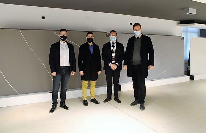 Matteo Canalini, CEO de Best Surface y Gerente Comercial de Laminam España, y Michele P. Perozzi, Director de Operaciones del Grupo Laminam, han recibido a los responsables municipales y les han acompañado durante su visita, en la que han podido conocer de primera mano la diversidad y calidad de las propuestas de la firma y presenciar in situ el proceso productivo, con la tecnología más vanguardista del mercado.