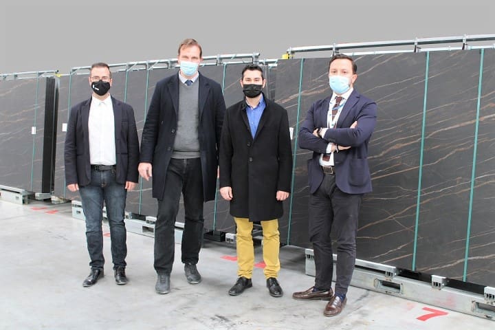 Matteo Canalini, CEO de Best Surface y Gerente Comercial de Laminam España, y Michele P. Perozzi, Director de Operaciones del Grupo Laminam, han recibido a los responsables municipales y les han acompañado durante su visita, en la que han podido conocer de primera mano la diversidad y calidad de las propuestas de la firma y presenciar in situ el proceso productivo, con la tecnología más vanguardista del mercado.