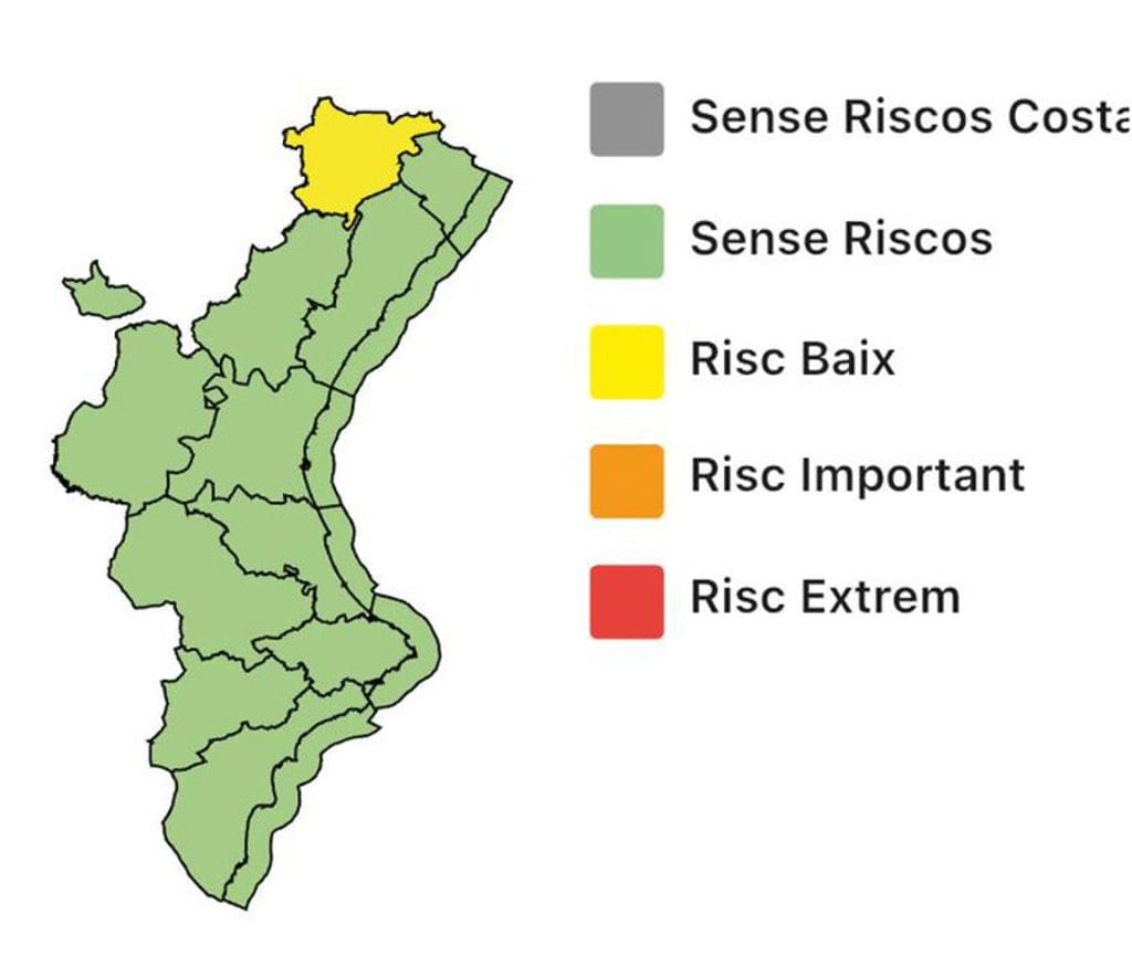 El Centro de Coordinación de Emergencias de la Generalitat ha establecido la alerta amarilla por vientos de hasta 80 kilómetros por hora en el interior de la provincia de Castellón.