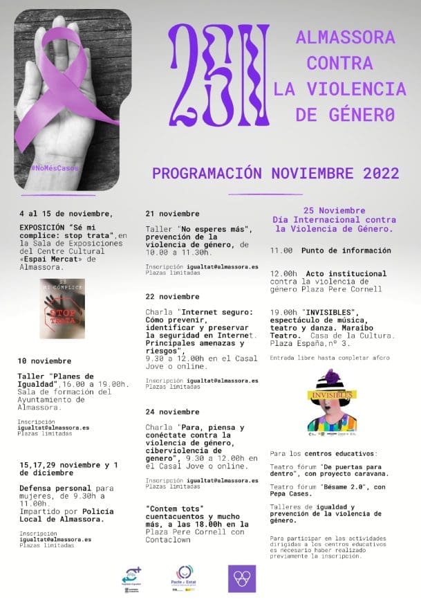 La programación de actividades gratuitas impulsadas por el consistorio abarca un total de 12 eventos dirigidos a todos los rangos de edad de la población de Almassora, con el objetivo de concienciar a la ciudadanía ante una de las lacras sociales más agudas.