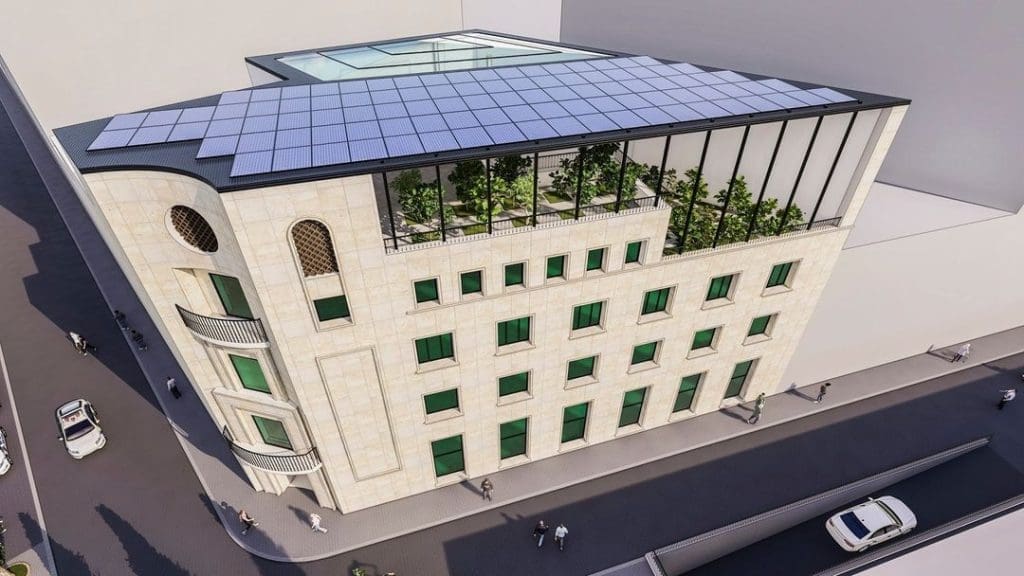 Ese concepto ecológico del edificio afectará a todas las plantas, tanto por el uso de las instalaciones fotovoltaicas para 45kW como por la apuesta por la vegetación. En el caso de la planta superior, concebida como terraza y jardín vertical con plantas para generar C02, el invernadero funcionará con riego reciclado de agua de lluvia.