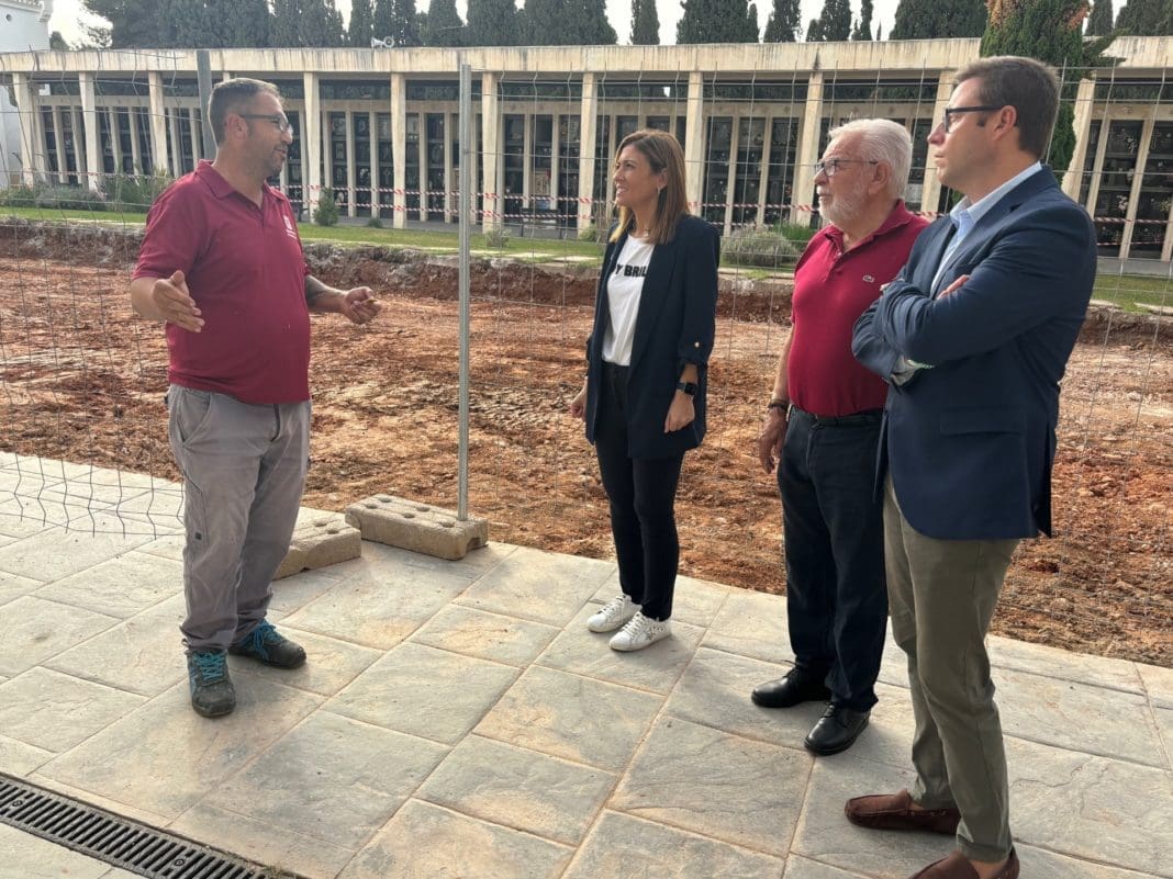 La alcaldesa, María Tormo, junto al concejal de Urbanismo, Vicente Martínez-Galí, y al edil de Servicios Públicos, José Martínez, han supervisado el inicio de estas obras que buscan garantizar la capacidad del camposanto con previsión cara a los próximos años.