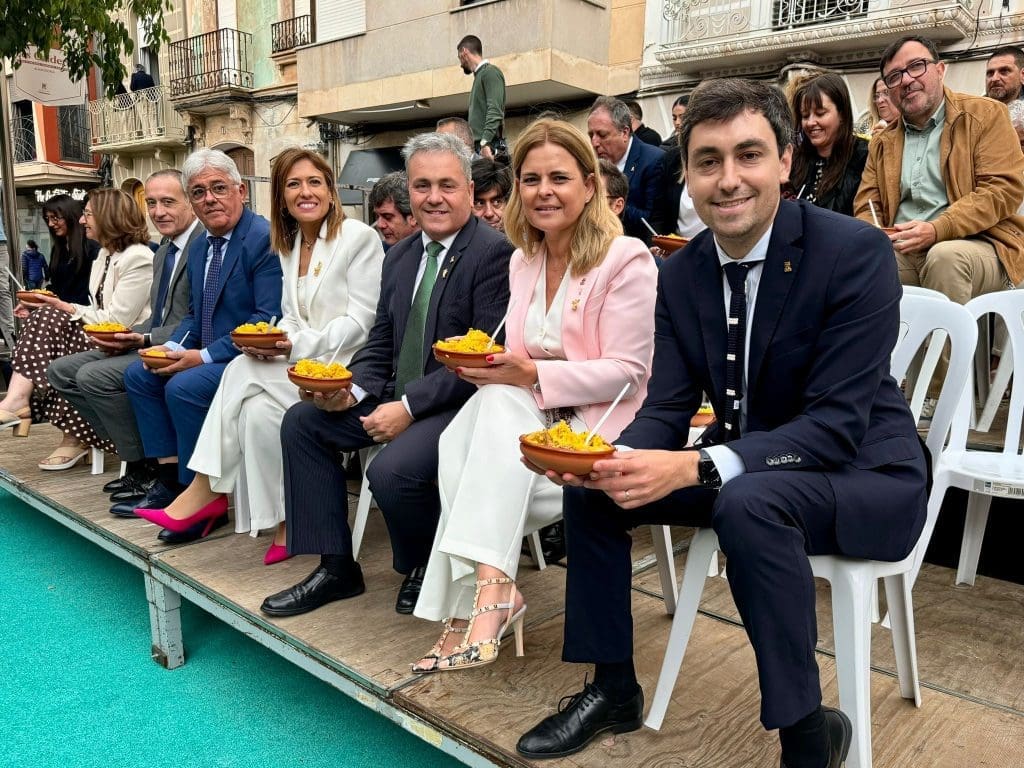 La carroza de Les Calderes ha precedido a los clarines y al pregonero, Jaume Vaquer, que ha leído los versos para anunciar la llegada de las fiestas patronales en honor a Santa Quitèria en diversos puntos del recorrido, así como ante la tribuna de autoridades, donde se encontraba la alcaldesa, María Tormo, junto al resto de miembros de la corporación municipal.