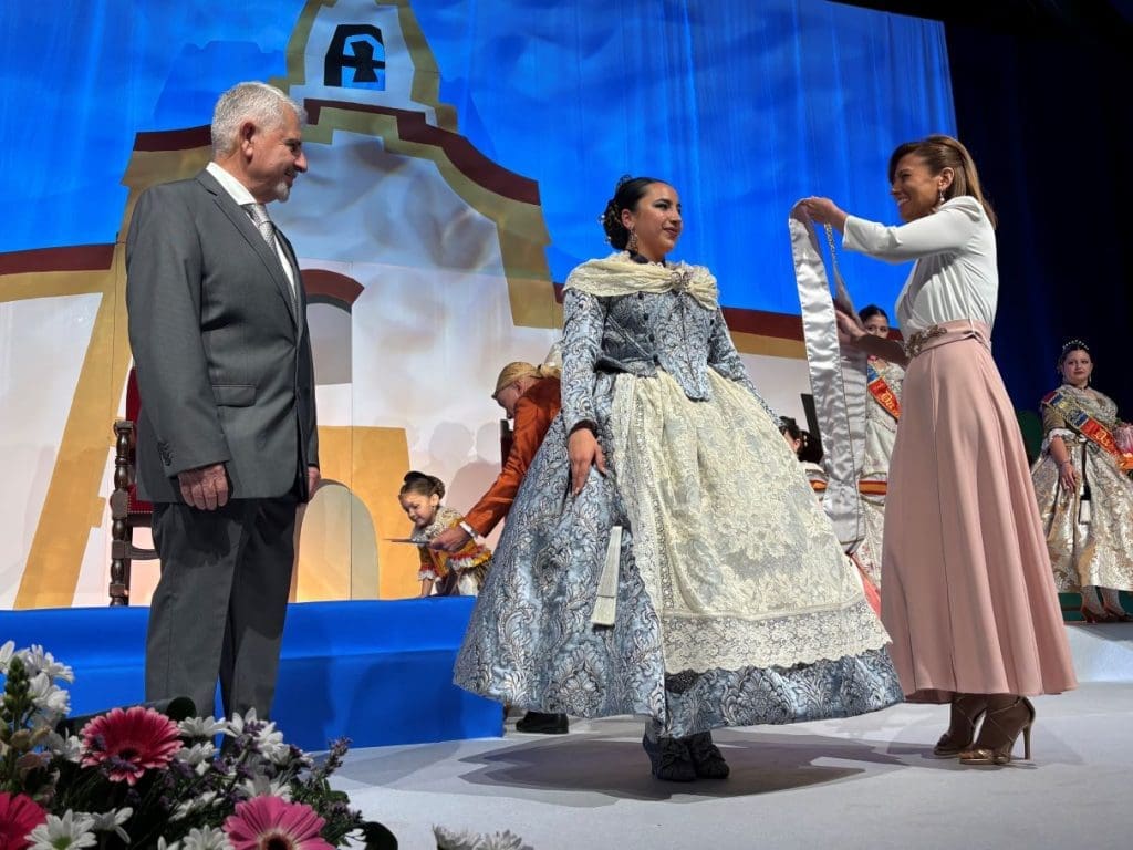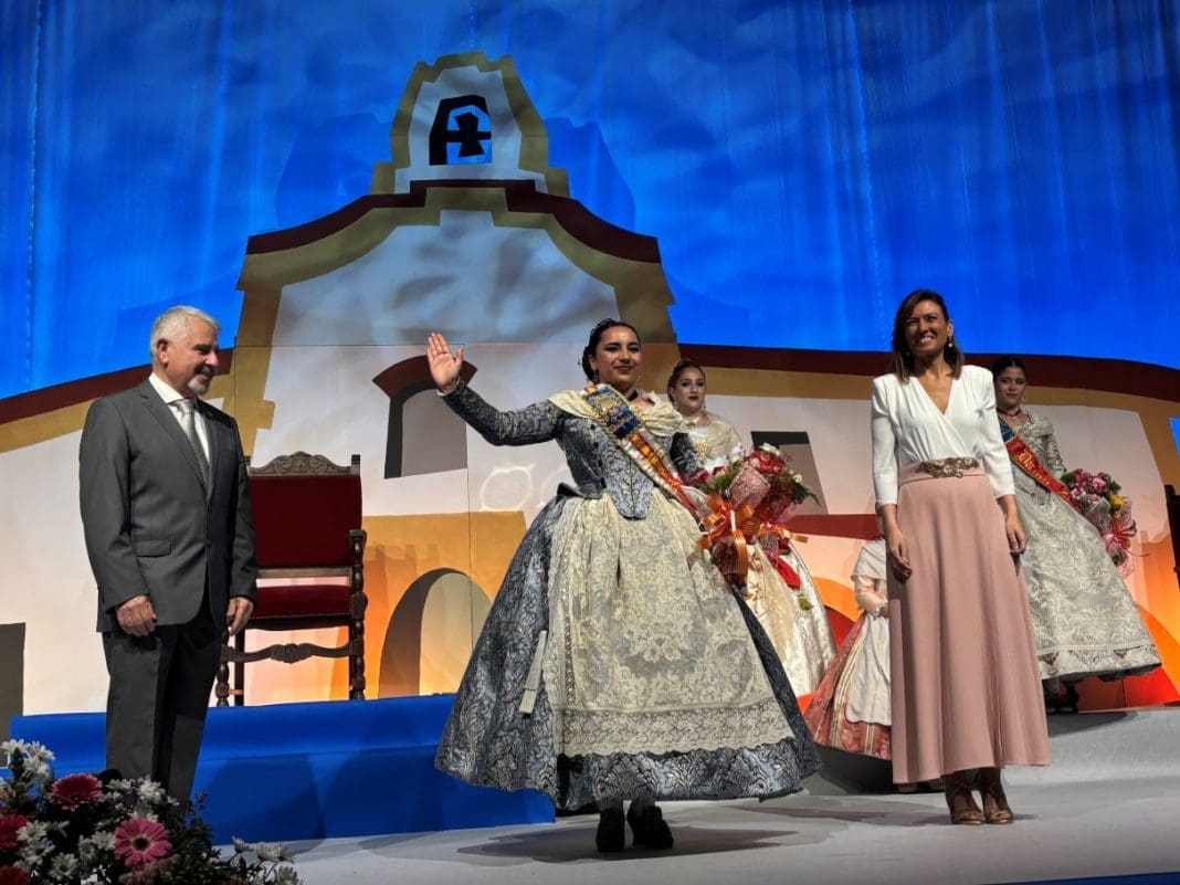 Sara, que ha cogido el testigo de Aitana Adsuara, ha subido al escenario flanqueada por la Policía Local de gala y acompañada por la alcaldesa de Almassora, María Tormo, y el mantenedor, Javier Navarro, quien ha rendido pleitesía a la reina y la corte con palabras llenas de sentimiento y emoción para una noche inolvidable.