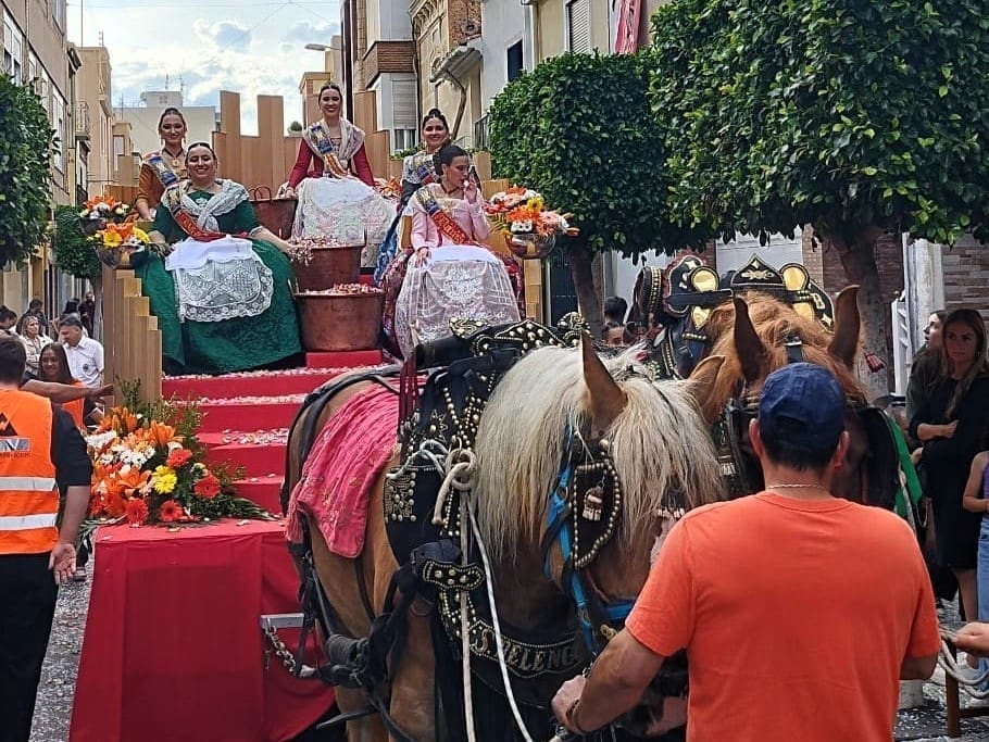 Como de costumbre, el broche final lo ha puesto la carroza de la reina, Aitana Adsuara García, y las damas; María Vidal Lliberós, Verónica Franco Ruano, Laura Garrido Amiguet y Alexandra Pesudo Adsuara, con el acompañamiento de la Unión Instructivo Musical La Esmeralda.