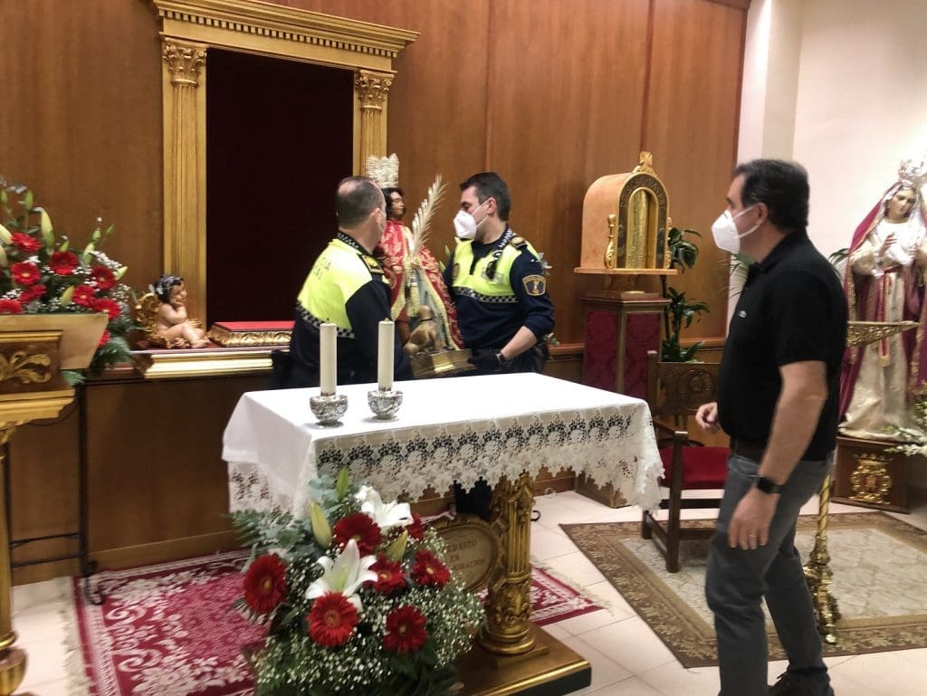 La regidora de Festes, Isladis Falcó, que ha participat en el trasllat al municipi al costat de l’edil Javier Mollá, ha assenyalat que la imatge, que haguera baixat demà en romeria, estarà custodiada pel rector Juan Ángel Tapiador a l’interior de l’edifici i els devots només podran seguir la missa dominical, a porta tancada, per televisió. La localitat romandrà demà en fase 0, per la qual cosa el temple continuarà tancat al públic i no hi haurà culte per a un terç de la població com estava previst per a la següent fase.