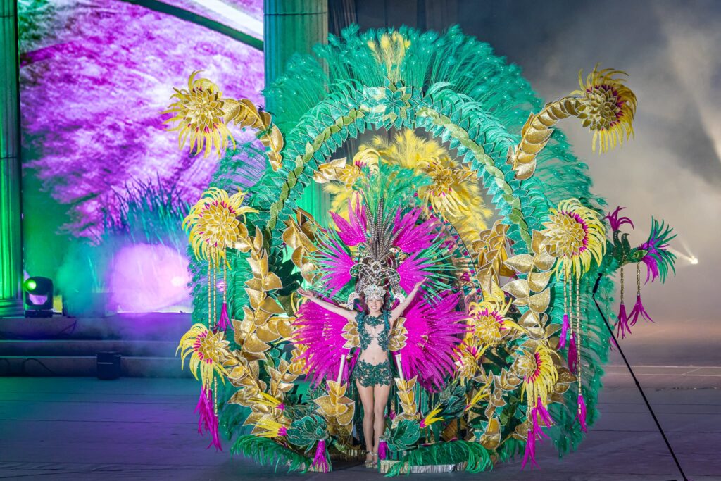 La infraestructura escénica cuenta con más de 400 luminarias, 12 máquinas de fuego, 10 láseres, 300.000 vatios de potencia lumínica y una pantalla LED de 40 metros de anchura por 17 metros de altura, que permite seguir cada detalle de las fantasías con una calidad visual de primer nivel tanto para el público asistente como para los espectadores que sigan la retransmisión desde casa.