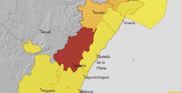 Por otro lado, los bomberos del Consorcio provincial de Castellón en sus redes sociales ya alertan dque Aemet Comunitat Valenciana ha emitido Aviso Rojo por lluvias en el interior sur de Castellón