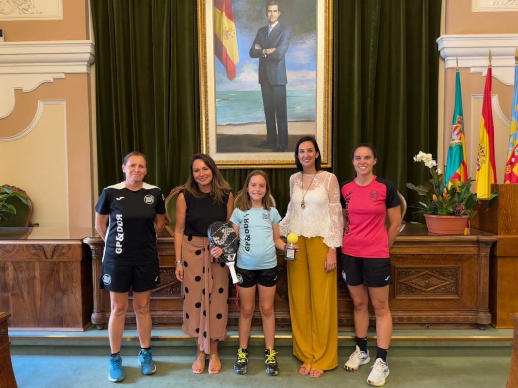 La concejal de Bienestar Social y Deportes, Maica Hurtado, y la concejal de Educación, María España, han recibido en el Ayuntamiento de Castellón a la joven deportista Vera Domínguez, campeona de España de pádel en categoría benjamín.