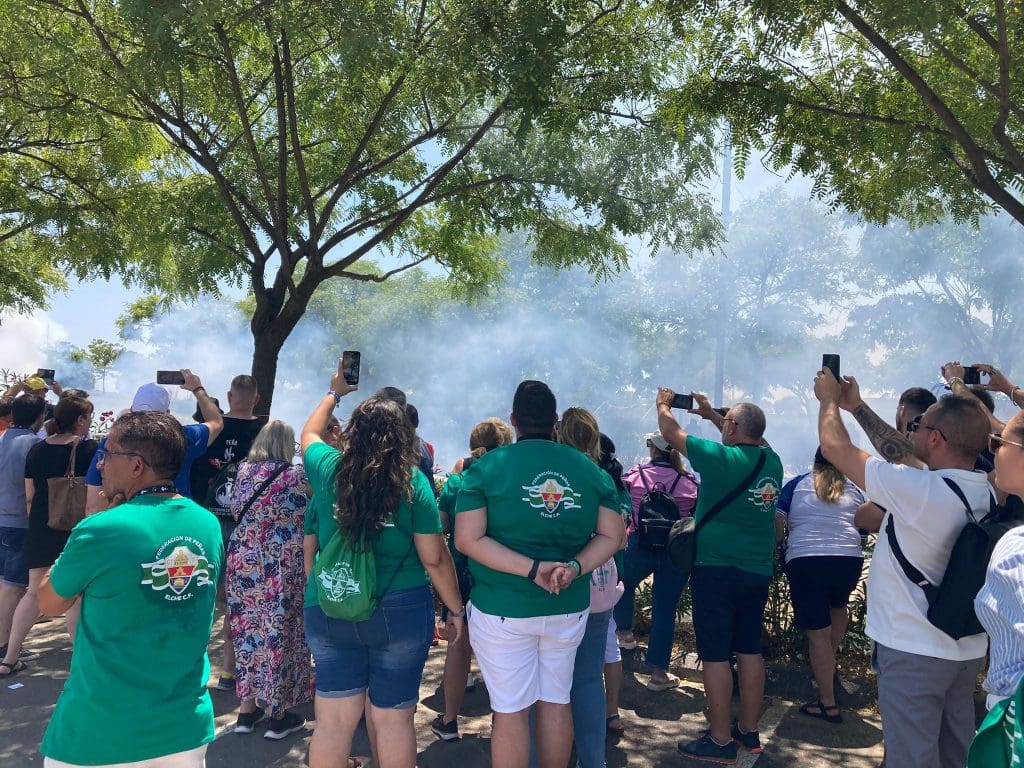«Al final se pudo adelantar media hora la primera mascletà manual, lo que implicó informar a la Guardia Civil por un tema de permisos y las puertas se abrieron antes para evitar que a nadie le pudiera dar un golpe de calor», apunta Aicart.