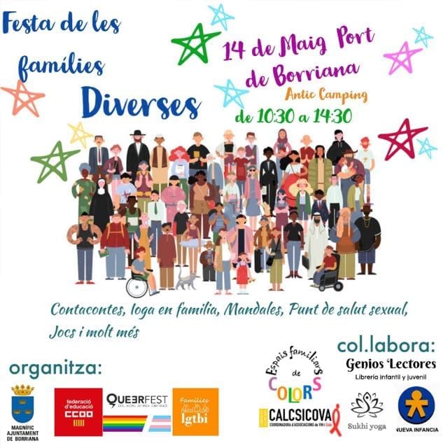 El Ayuntamiento de Borriana celebrará, con motivo del Día Internacional de la Familia y de la Diversidad Familiar el lunes 15 de mayo, el encuentro anual de la Festa de les Famílies, para poner en valor los diferentes modelos de familia, compartir inquietudes y crear red entre ellas.