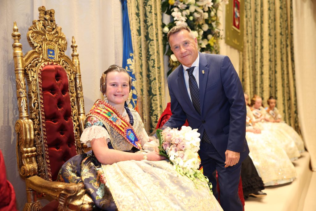 Ana Olivas ha recibido la banda de Reina Fallera Infantil de Burriana 2026 de manos del alcalde, Jorge Monferrer Daudí. Estuvo junto con la Corte de Honor y Damas de la Ciudad 2026 y las falleras de las 19 comisiones falleras del municipio.
