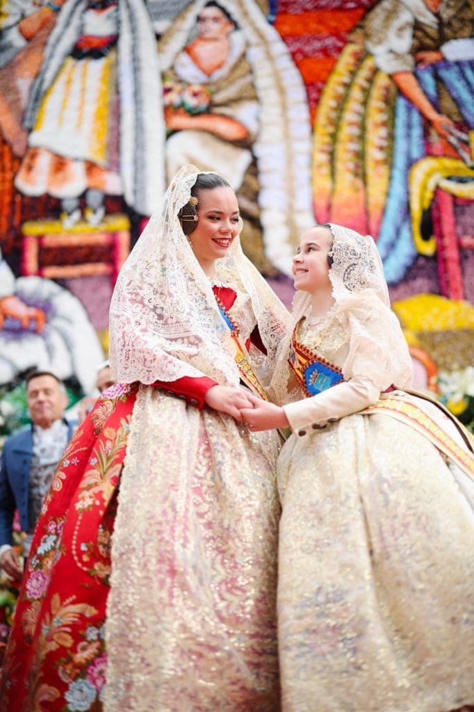 Las Reinas Falleras de Burriana 2025, Claudia Sabater y Valeria Cuadros, han sido las encargadas de cerrar la Ofrenda con la entrega de sus ramos. Antes de ellas, han participado en el acto las Cortes de Honor y las Damas de la Ciudad, tal y como añaden fuentes del Ayuntamiento en un comunicado.