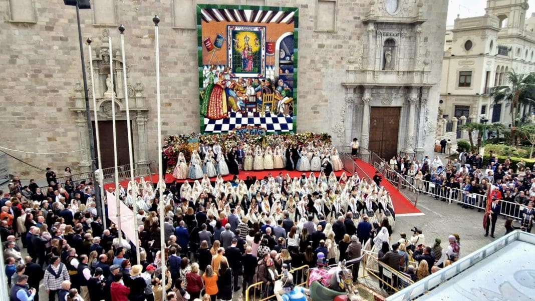 Como culmen de las Fallas 2024, las 18 comisiones falleras realizan la tradicional ofrenda de flores a la patrona de la ciudad.