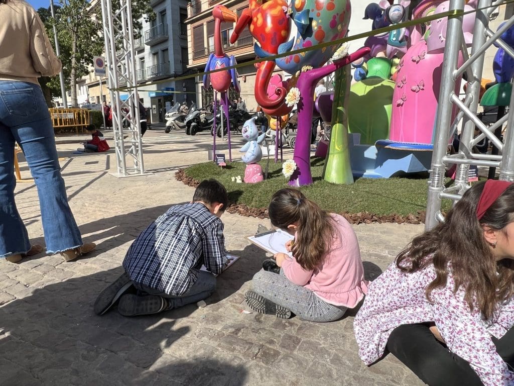 Los 120 niños y niñas participantes han aportado durante la mañana su particular y colorida visión del mundo de las fallas que han plasmado en sus trabajos con todo lujo de detalles y mucha precisión, llenando el centro de la ciudad con su creatividad y talento, y aportando su granito de arena a la actividad fallera del municipio.