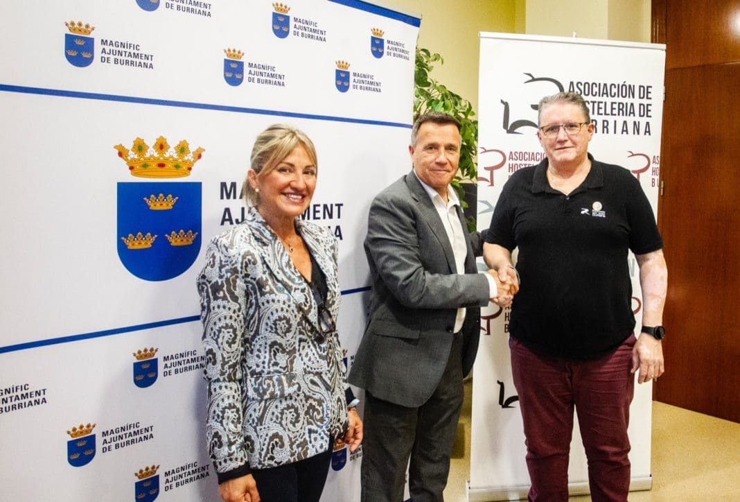 El Alcalde de Burriana, Jorge Monferrer Daudí, y el presidente de la Asociación de Hostelería de Burriana, José Gargallo, han suscrito el convenio de colaboración que establece las condiciones y los compromisos aplicables a la subvención prevista con carácter nominativo en el presupuesto municipal para el ejercicio de 2024.