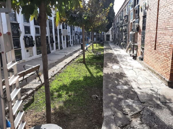 Asimismo, dentro de las políticas de mantenimiento y conservación del cementerio continuará con la renovación y adecuación de aceras, y se prevé la reparación de un tramo de hormigón que se encuentra agrietada y levantada y precisa ser reparada en una zona del cementerio antiguo. Una vez realizados los trabajos que incluyen la instalación de tuberías e imbornales nuevos, se instalarán 7 nuevos bancos de piedra.