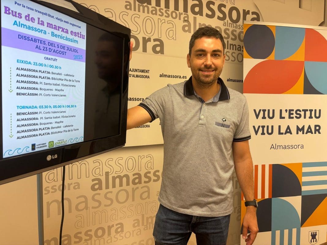 El Ayuntamiento de Almassora pone en marcha este sábado, 5 de julio, el servicio especial del Bus de la Marxa d’Estiu, que conectará las noches de los sábados de este verano, hasta el 23 de agosto, Almassora con Benicàssim de manera totalmente gratuita.