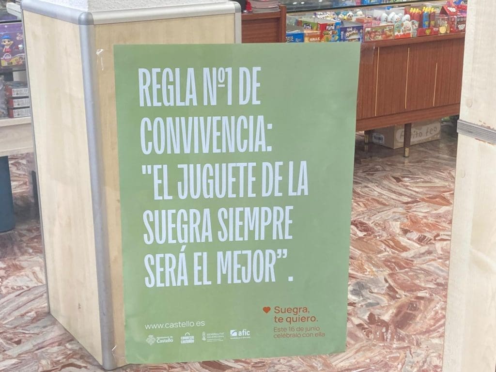 «Nosotros no vamos a obligar a ningún comercio a retirar esos carteles»(…) «si que hemos añadido frases políticamente correctas pero Vox no ha retirado la campaña«. De esta manera ha tratado de explicarse el concejal de comercio del ayuntamiento de Castelló, Alberto Vidal tras la polémica surgida a raíz de la campaña que usaba tópicos de la figura de la suegra como reclamo publicitario y que la oposición ya tildó de misógina y machista.