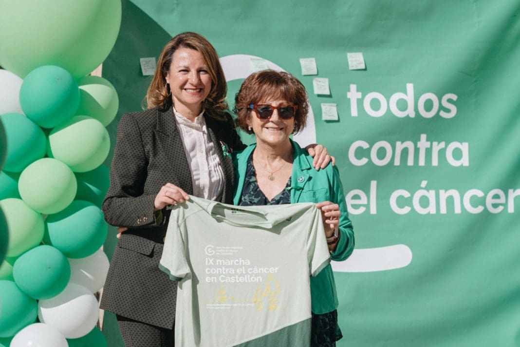 La alcaldesa de Castellón, Begoña Carrasco ha recibido de manos de la gerente de la Asociación Española contra el Cáncer de Castellón, Salomé Esteller, la camiseta de la IX edición de la Marcha Contra el Cáncer, que tendrá lugar este domingo a las 11 de la mañana con salida y meta en el andén principal del parque Ribalta.