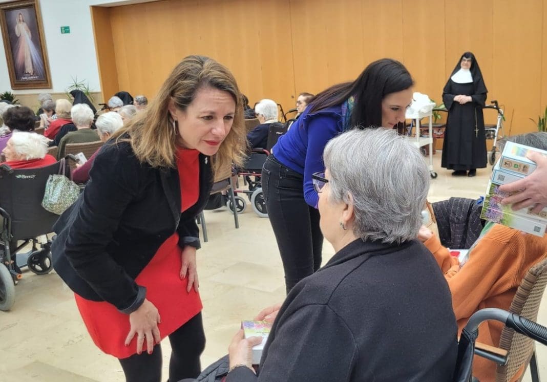 Carrasco ha vuelto al asilo Hogar Virgen de Lidón un año más, esta vez como alcaldesa de la ciudad, para felicitar las fiestas a los mayores, trasladar a sus cerca de un centenar de residentes todo el cariño y el apoyo del gobierno municipal y arroparles en estos días de fiesta porque “no queremos que se sientan solos, especialmente en estas fechas tan entrañables para pasar en familia”.