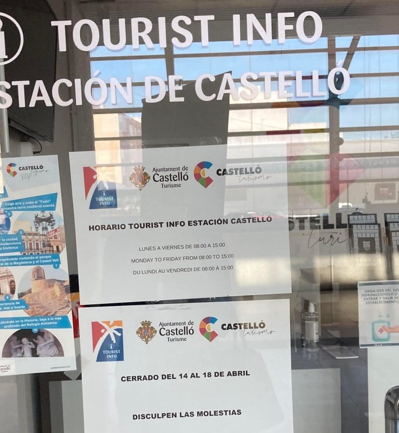 Por su parte, el departamento de comunicación del consistorio recuerda hoy que de forma habitual, «en Castelló hay tres oficinas turísticas abiertas todo el año: plaza de la Hierba, Renfe y párking de autocaravanas».