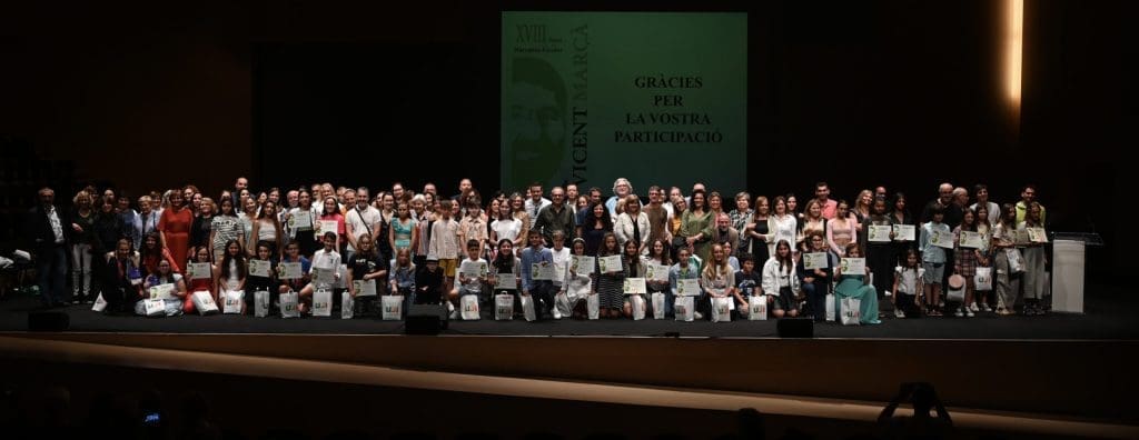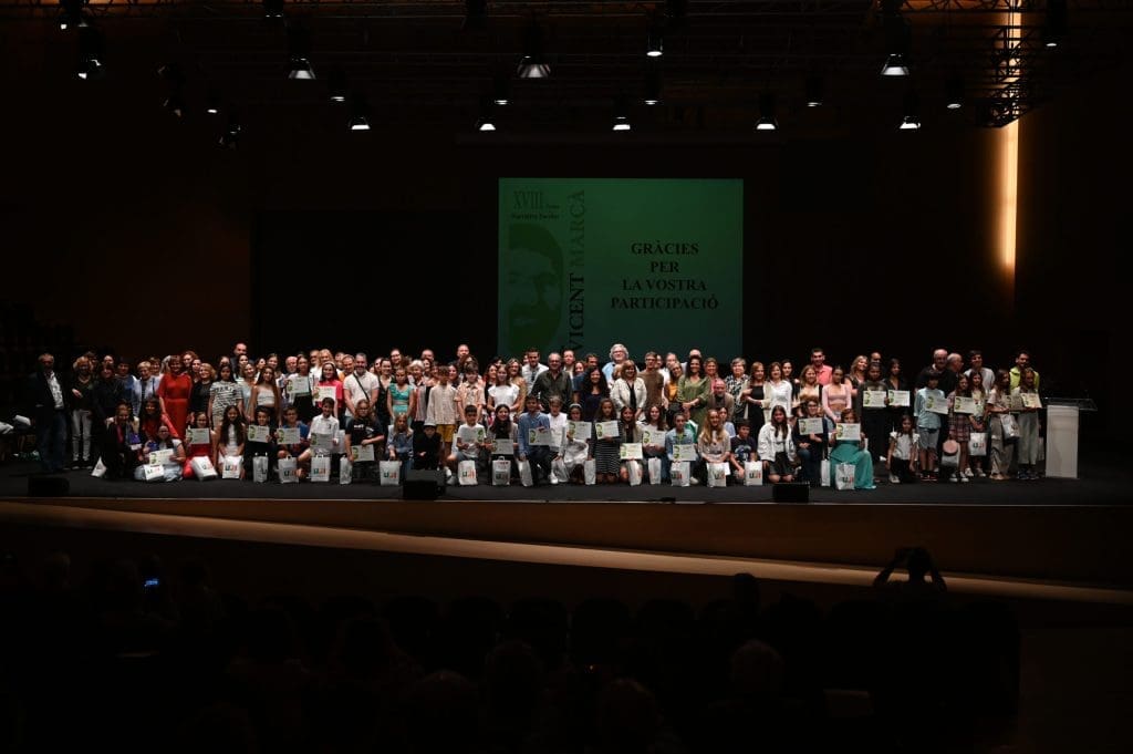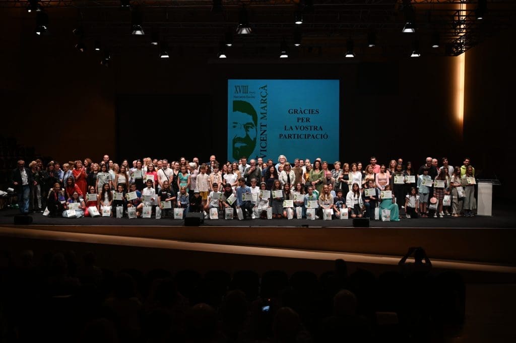 El Auditori de Castelló ha acogido este martes la entrega de los premios de Narrativa Escolar Vicent Marçà, impulsados por la Concejalía de Educación del Ayuntamiento de Castelló y la Comisión Cívica Vicent Marçà, al alumnado de 5.º y 6.º de 38 centros de la ciudad en la suya 18ª edición.