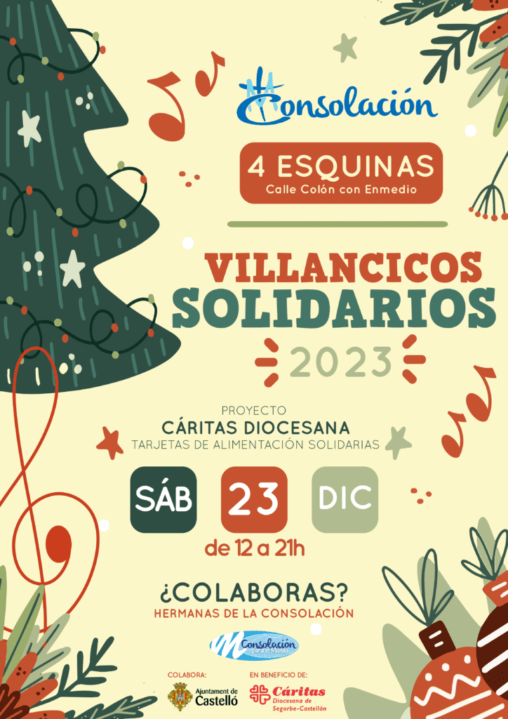 El próximo sábado 23 de diciembre, desde las 12:00 hasta las 21:00 horas, los jóvenes de la Familia Consolación de Castelló cautivarán a la ciudad con un diverso repertorio de canciones navideñas. Sonará la música con un eco solidario, recaudar fondos para el proyecto de Tarjetas de Alimentación Solidaria de Cáritas Diocesana Segorbe Castellón.