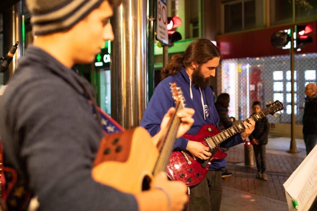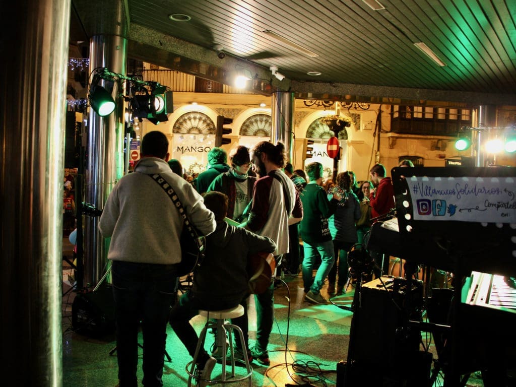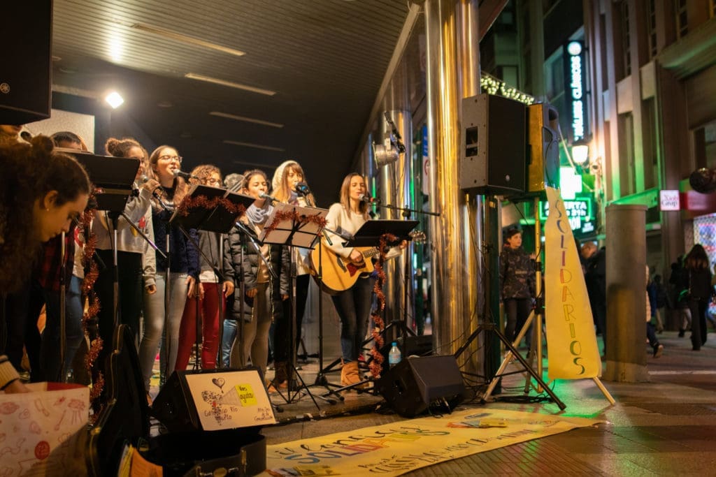 Como ya es tradición, el chaflán del edificio ‘Quatre Cantons‘ (calle Colón con Enmedio) se transformará en un improvisado escenario de música y solidaridad.