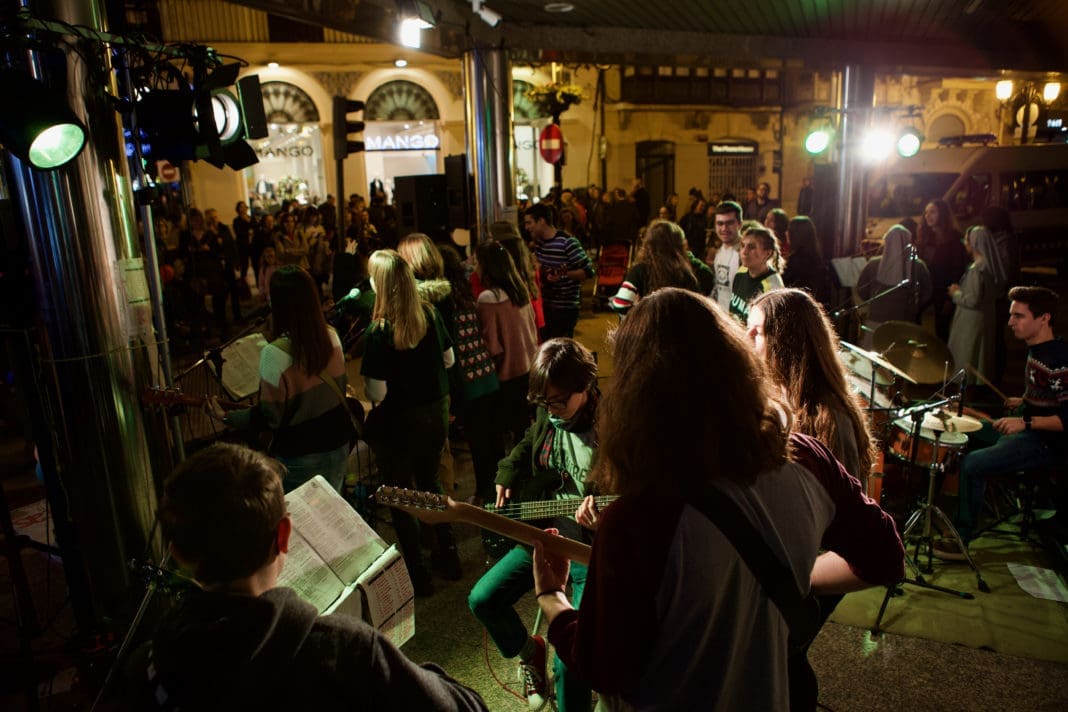 Como ya es tradición, el chaflán del edificio ‘Quatre Cantons‘ (calle Colón con Enmedio) se transformará en un improvisado escenario de música y solidaridad.