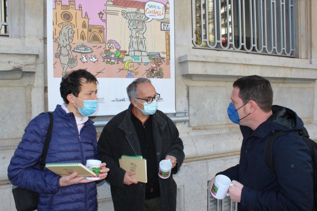 De hecho, esta misma mañana, los concejales Garcia y Mezquita han recibido al ilustrador Xipell en las puertas del Menador, justamente donde se despliega la campaña ‘Visc a Castelló’ desde la fachada del propio edificio.
