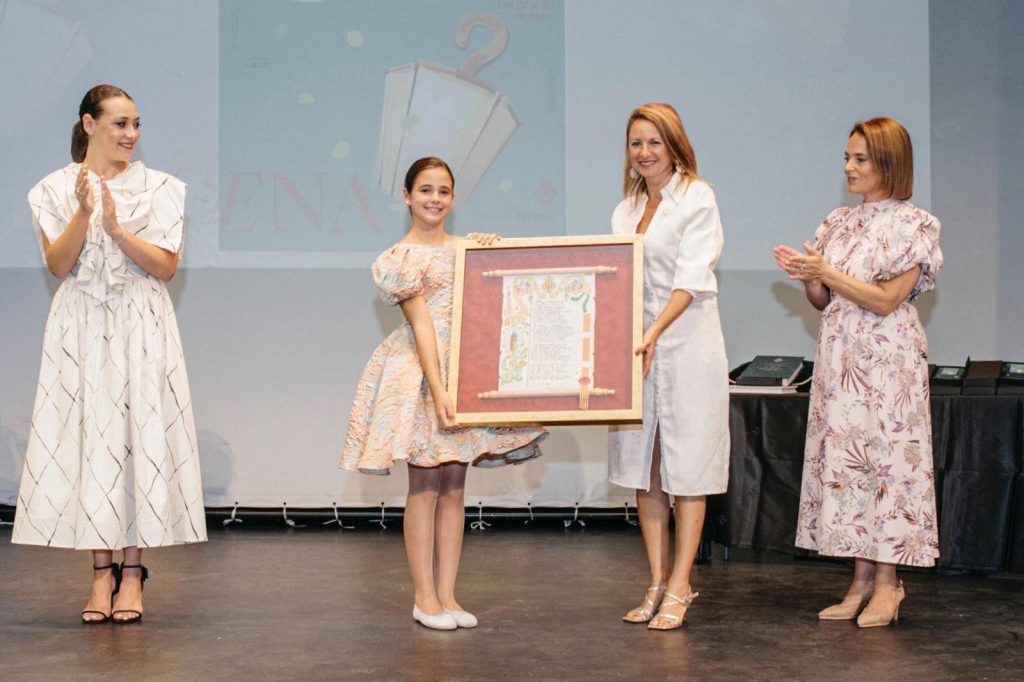 La alcaldesa ha culminado el acto obsequiando a las Reinas Paula y Carla, como es tradición, el pergamino del Pregó, así como del cojín que se colocó en sus pies en el acto de imposición de bandas, un dossier de prensa con las noticias de su año como máximas exponentes de las fiestas de la ciudad, y se ha dado continuidad a una novedad que la primera edil introdujo el año pasado. Se trata de un álbum de fotos con las imágenes más destacadas de los eventos a los que han asistido en su reinado.