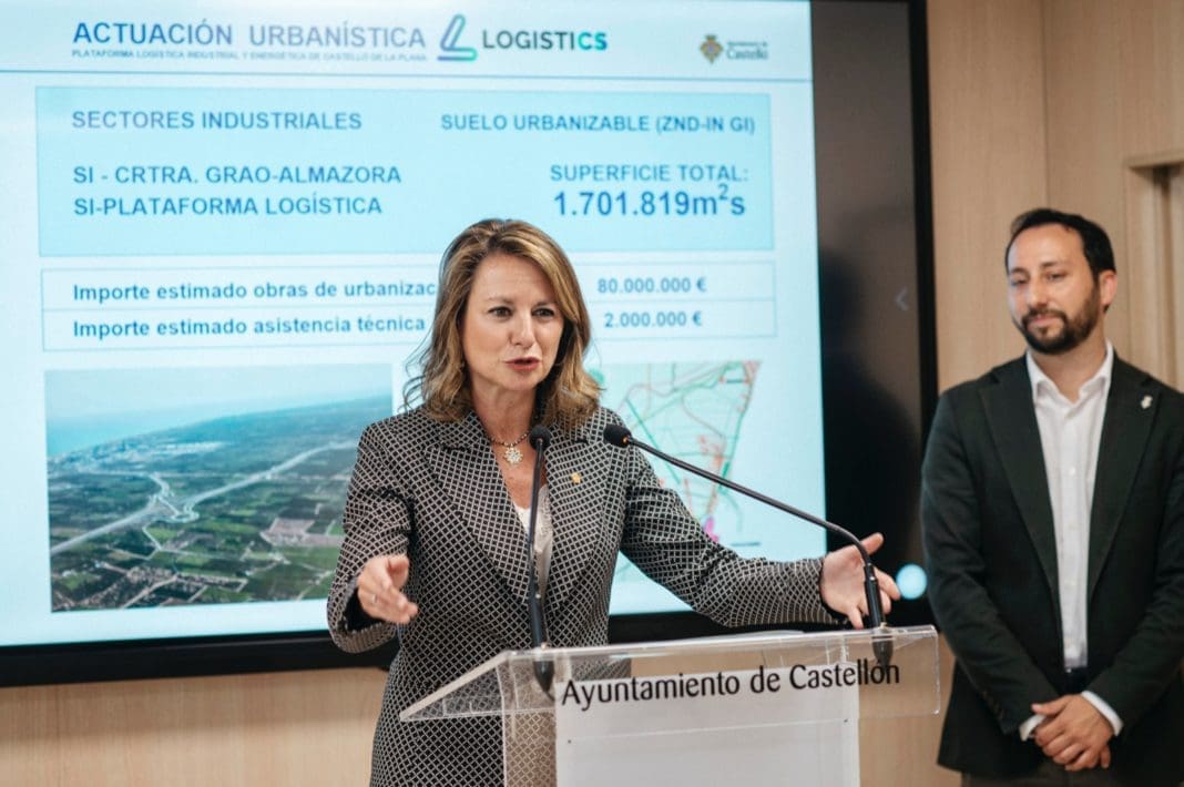 La alcaldesa de Castellón, Begoña Carrasco, ha presentado esta mañana la nueva zona de desarrollo industrial, que llevará el nombre de Logistics, en la zona anexa al polígono del Serrallo y junto a la CS-22 y la N-225 en el Grau. Carrasco ha comparecido en rueda de prensa junto al concejal de Urbanismo, Sergio Toledo.