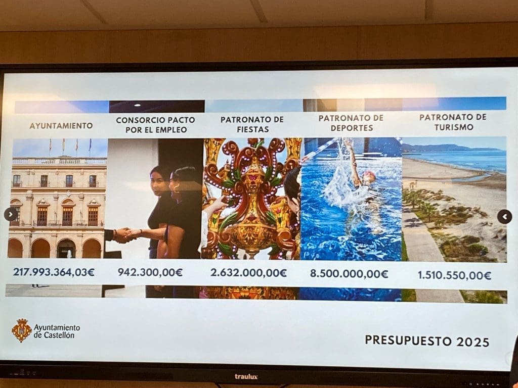 Con un aumento del 1,5% en las cuentas específicas del ayuntamiento -cerca de 218 millones frente a los 214,5 del pasado año, la alcaldesa de Castellón ha presentado este jueves el presupuesto para el 2025 que asciende a 231,5 millones «de oportunidades» como lo ha definido. Una cifra que contempla las partidas de los distintos patronatos, fiestas, deportes, turismo y el consorcio ‘pacto por el empleo’ lo que convierte en un «presupuesto integrado», y «el mayor de la historia de la ciudad», según ha señalado.