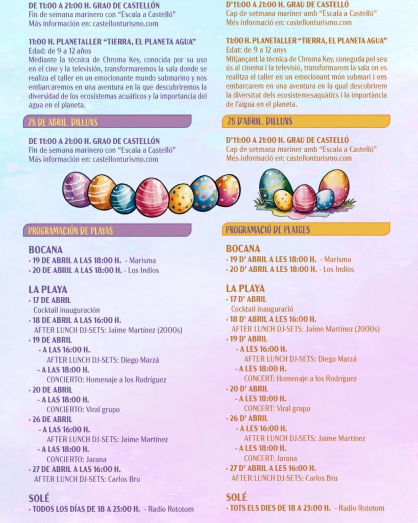 Destacando que además el hecho de la apertura de los «chiringuitos» en las playas de Castellón que también contarán con actividades especiales durante estos días.