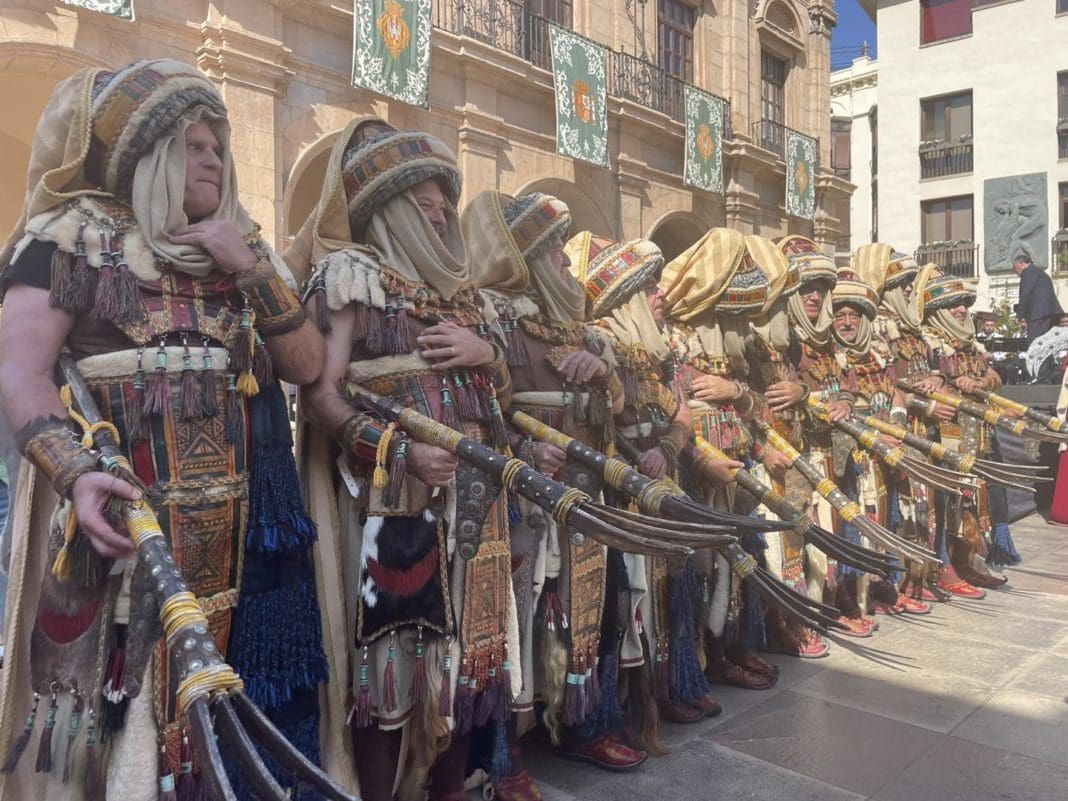 Al llegar al punto de destino, representantes de las tres entidades participantes han entrado en el ágora al son del ‘Himne a l’Aljama’, de Juanjo Carratalà; ‘Moros d’Alqueria’, de Francisco Signes; y la ‘Cridà i marxa dels Cavallers de la Conquesta’, de Rafael Mullor.