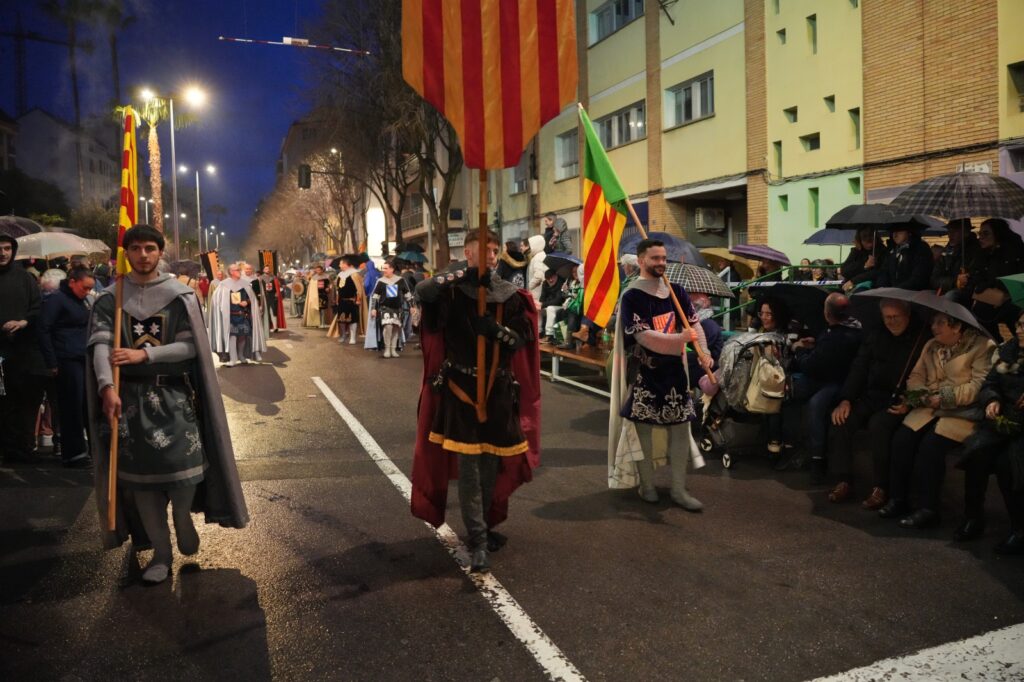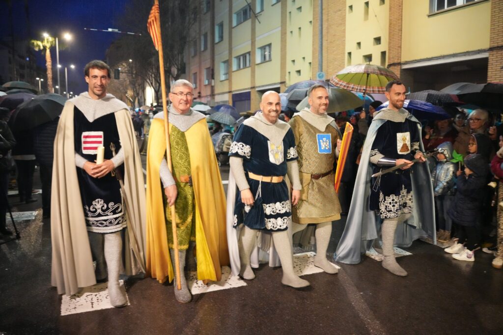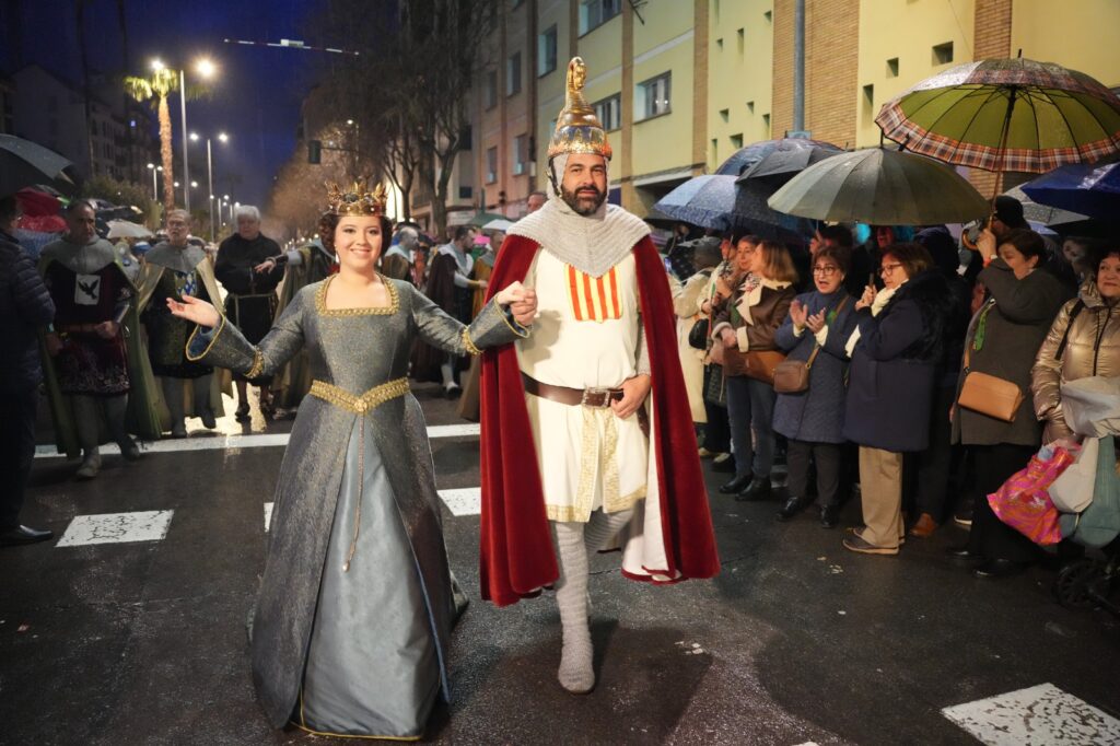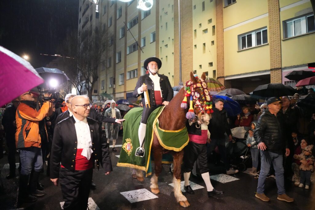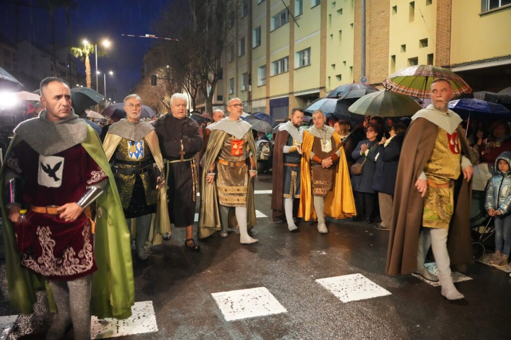 La jornada estuvo condicionada por el mal tiempo desde primeras horas de la tarde. Aun así, el Ayuntamiento buscó una salida para mantener el recorrido y permitir que el pregonero de 2026, Manuel Torada Calonge, pudiera entonar los versos de Bernat Artola en los puntos previstos.
