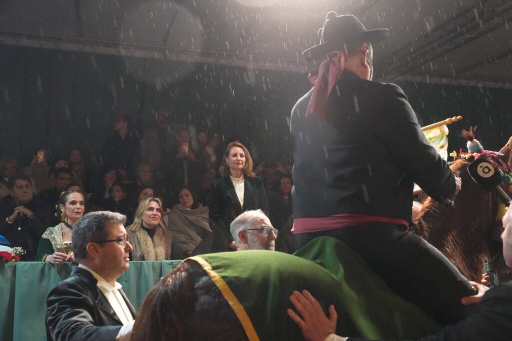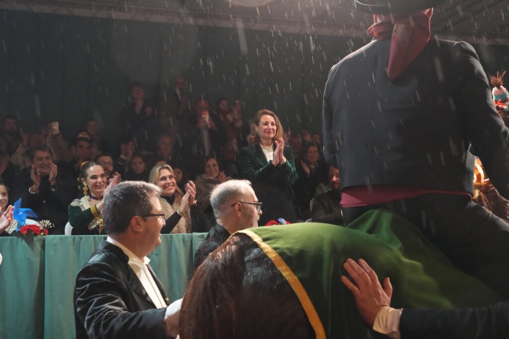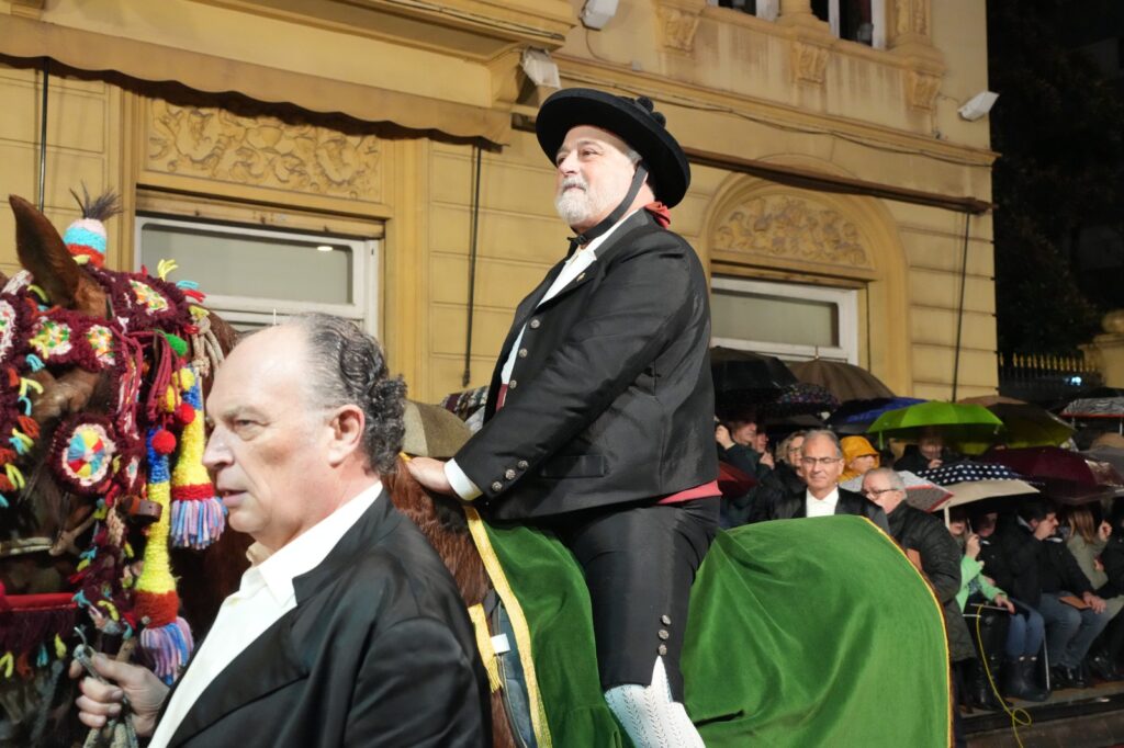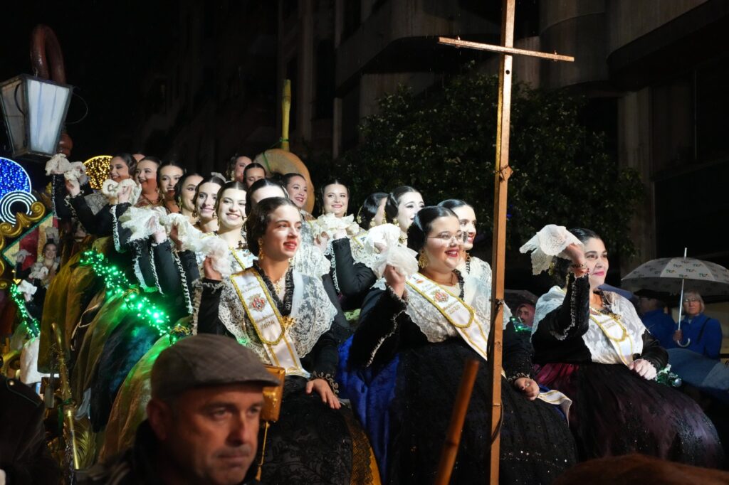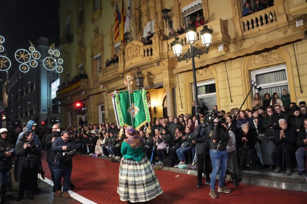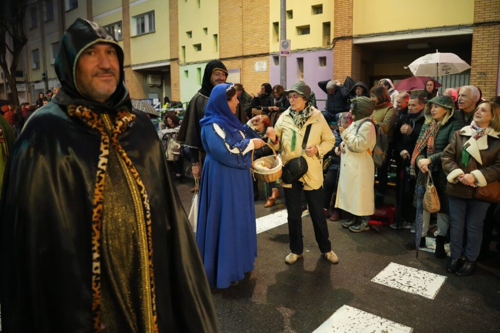 La jornada estuvo condicionada por el mal tiempo desde primeras horas de la tarde. Aun así, el Ayuntamiento buscó una salida para mantener el recorrido y permitir que el pregonero de 2026, Manuel Torada Calonge, pudiera entonar los versos de Bernat Artola en los puntos previstos.