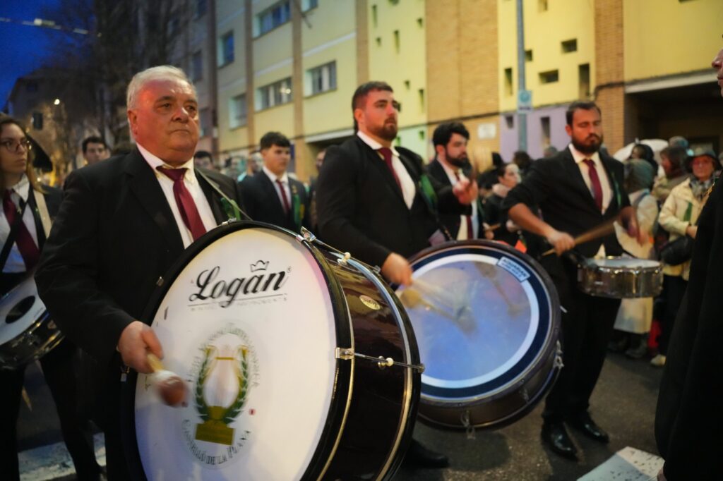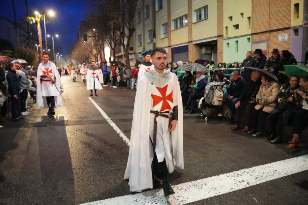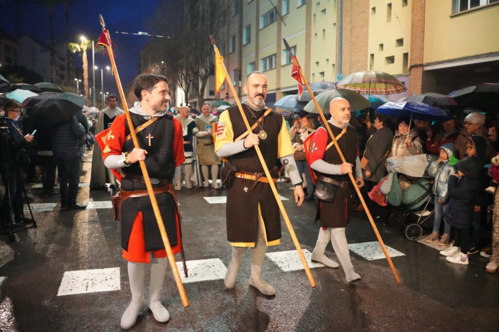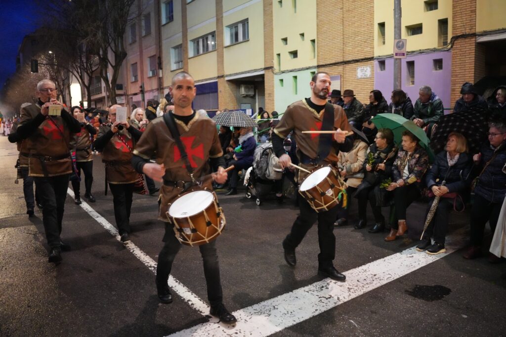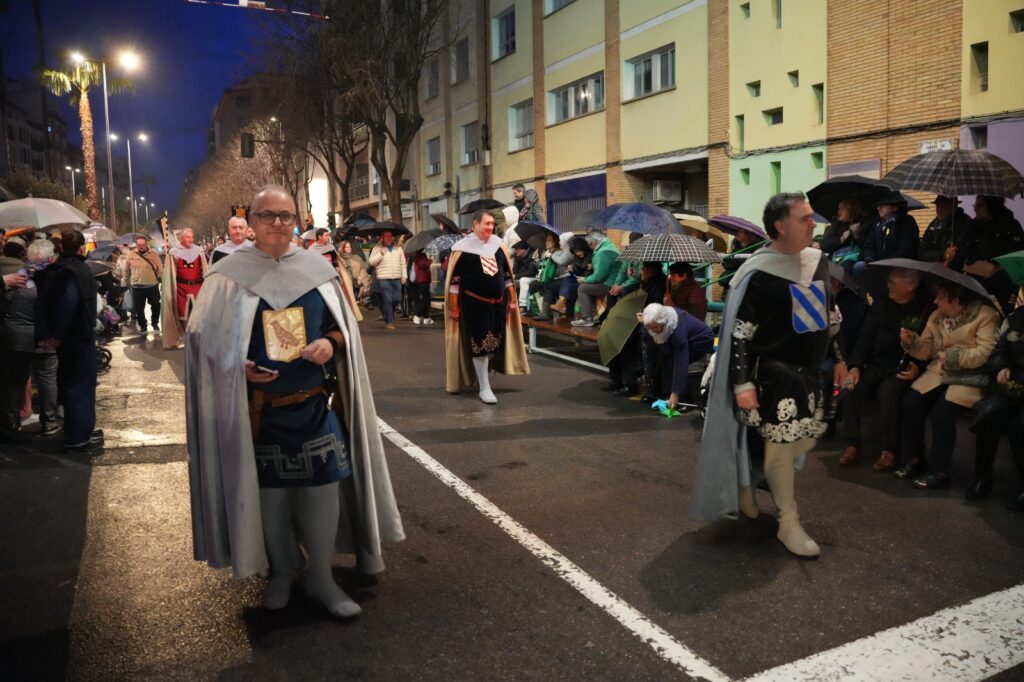 El momento más emotivo llegó con la intervención de Manuel Torada Calonge. El pregonero leyó los versos de Bernat Artola bajo la lluvia y firmó una escena de gran carga sentimental en pleno recorrido.