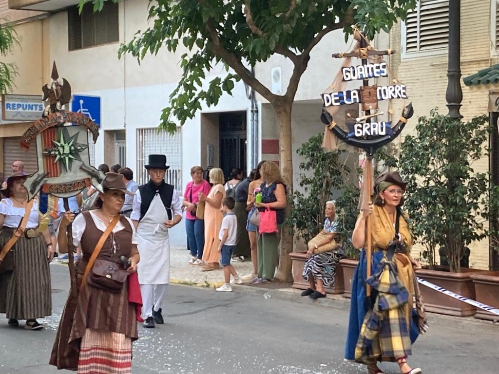 También una de las estampas más potentes en lo atronador la ofreció la Colla de Trabucaires Xaloc, cuyos potentes disparos de pólvora evocaron los peligros y conflictos históricos que enfrentaban antaño los pueblos costeros como El Grau, especialmente defendidos por torretas de vigilancia que alertaban de incursiones marítimas.