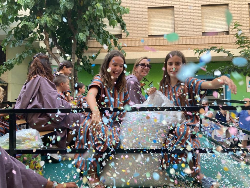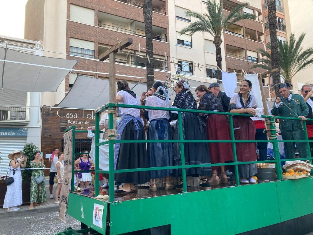El momento más institucional vino de la mano de la carroza de las máximas representantes de las fiestas de Sant Pere: María Guzmán Santolaria y Martina Valerino, junto a los presidentes Miguel Valerino Santolaria y Pablo Valerino Gallego acompañadas por sus respectivas Cortes de Honor.
