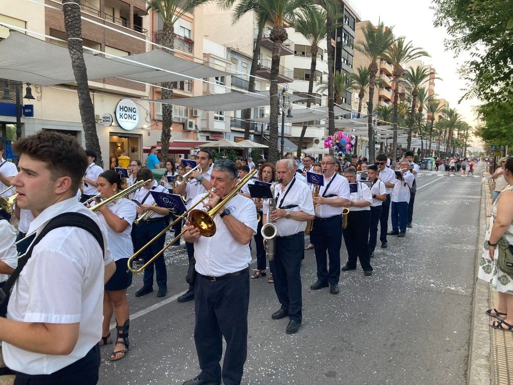 El desfile arrancó a las 19:00 horas y, como cada año, rindió homenaje a las raíces marineras del distrito costero, pero también puso el acento en la evolución social y cultural de la fiesta, con una presencia cada vez mayor de mujeres en las filaes mores. Unas filaes femeninas, que se consolidan como parte esencial del entramado festivo.