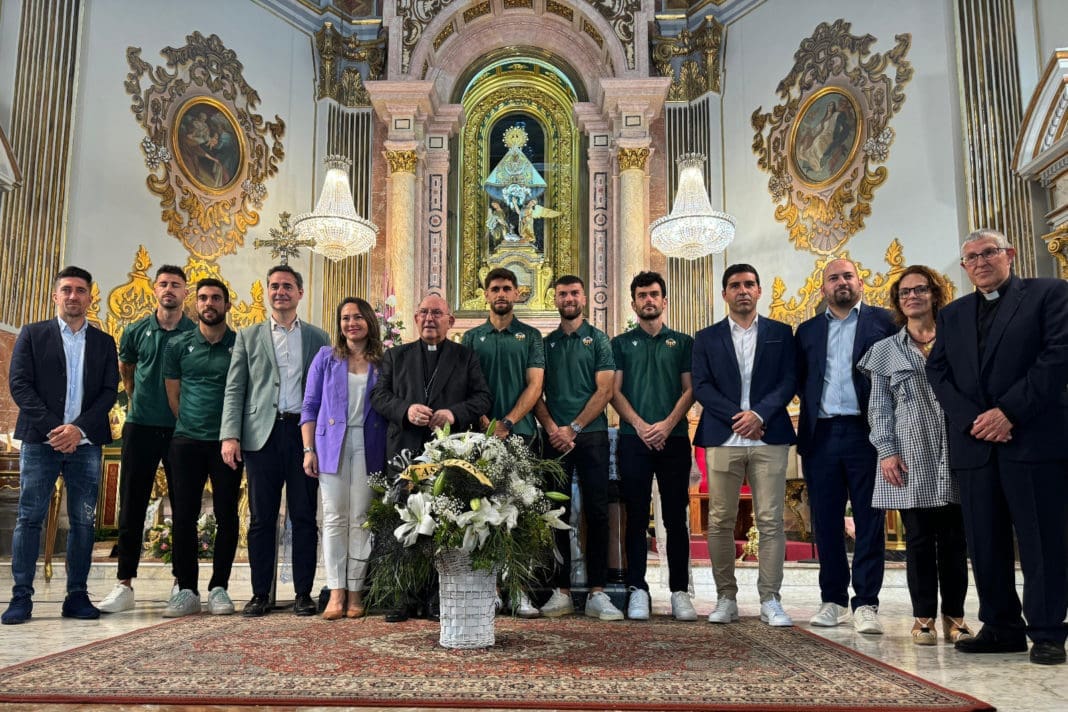 El CD Castellón ha visitado la Basílica del Lledó para realizar la tradicional ofrenda floral a la Patrona por el reciente ascenso a Segunda División.